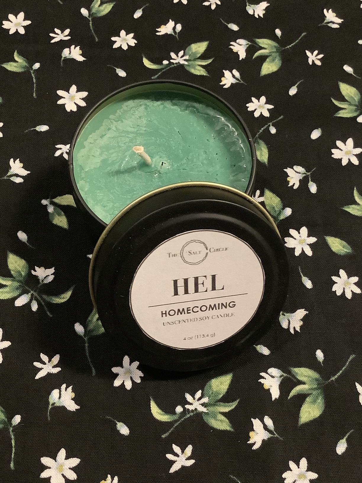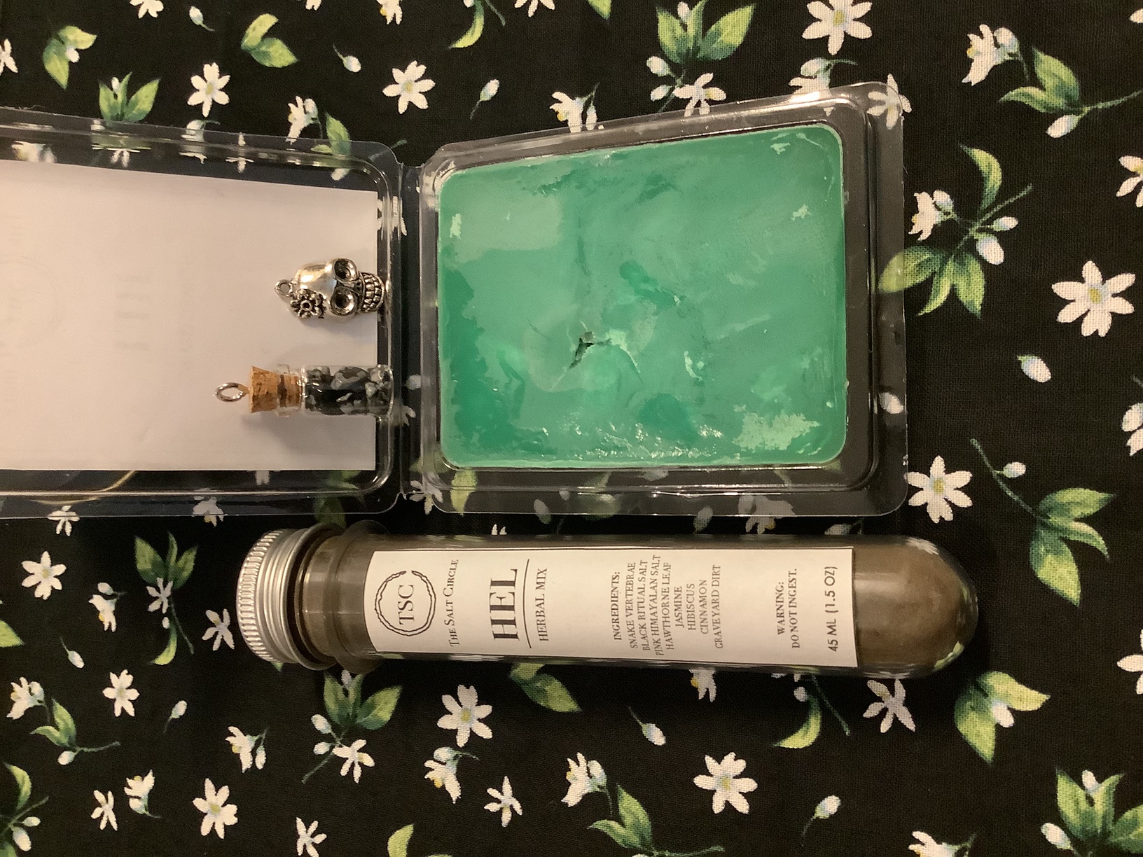 Each full kit comes with a candle, a set of melts, a vial of herbs mixed for the specified deity, a vial of stone, a charm, and a piece of cloth that can be used for your altar, as a headscarf, or however you see fit.