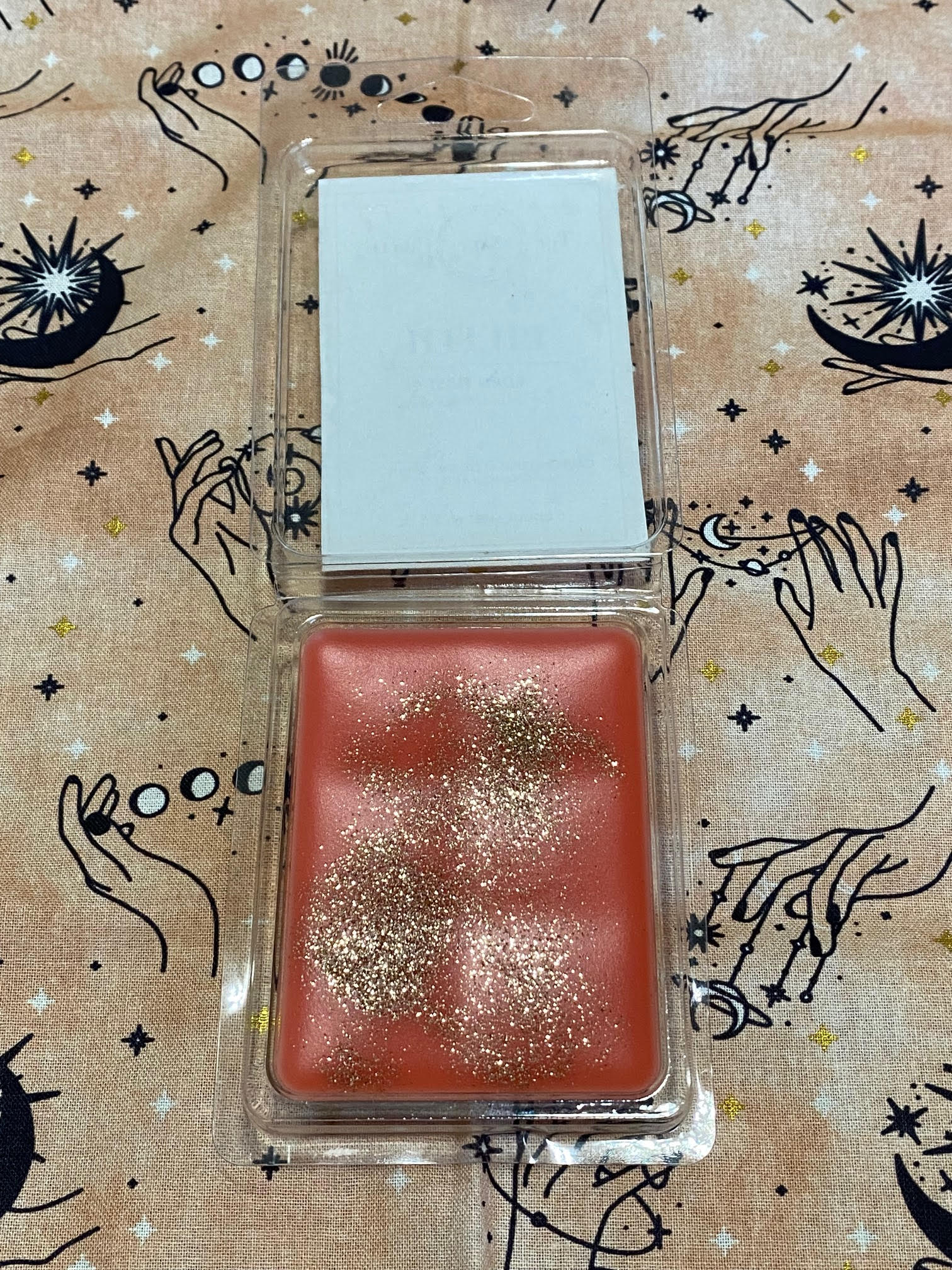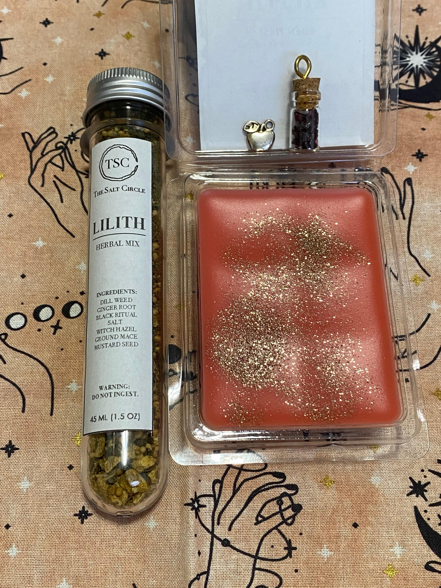Each full kit comes with a candle, a set of melts, a vial of herbs mixed for the specified deity, a vial of stone, a charm, and a piece of cloth that can be used for your altar, as a headscarf, or however you see fit.